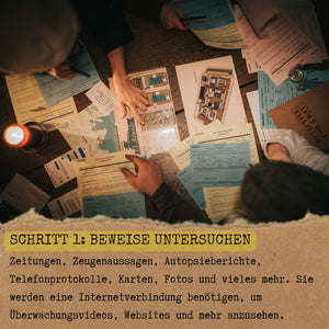 Perfekt für einen Abend mit deinem Partner, deinen Freunden oder deiner Familie. Du kannst den Fall auch alleine aufklären. Wir empfehlen dir aber, dich mit einem Partnerermittler abzusprechen! Spieldauer: 2 bis 3 Stunden.